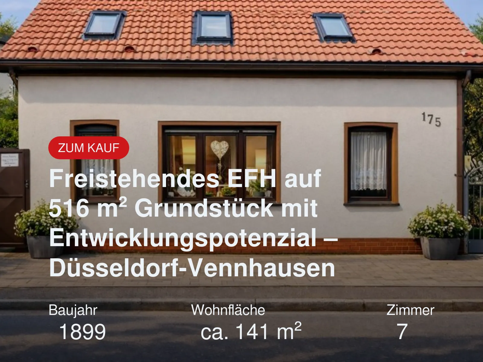 Dieses freistehende Einfamilienhaus in gewachsener Wohnlage von Düsseldorf-Vennhausen bietet eine seltene Gelegenheit für Eigennutzer, Handwerker oder Projektentwickler mit Weitblick. Das ca. 1899 errichtete Wohnhaus steht auf einem großzügigen Grundstück von rund 516 m². Der Bodenwert der Lage bewegt sich aktuell in einem attraktiven Marktumfeld. Die Immobilie verfügt über eine Wohn-/Nutzfläche von ca. 171 m² sowie […]